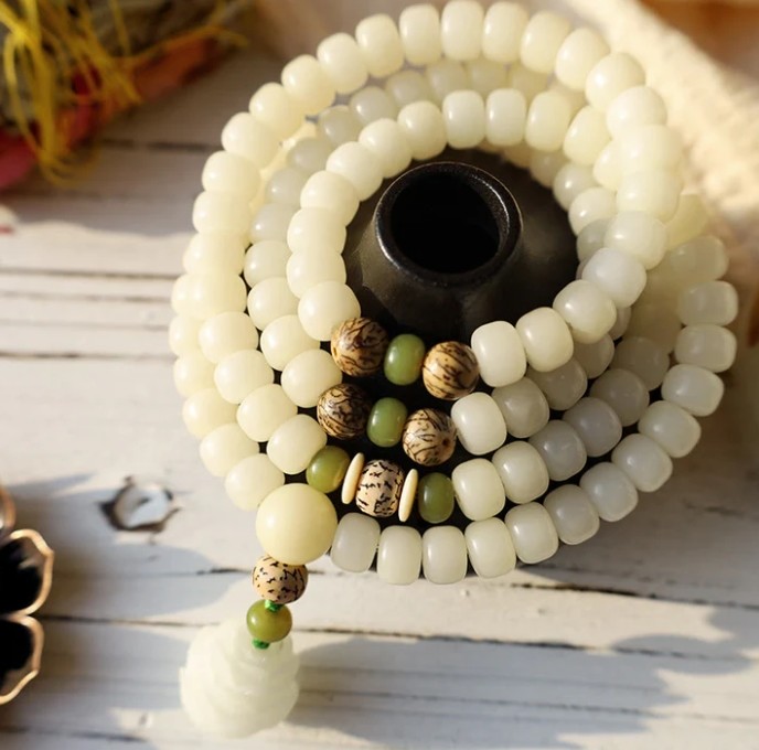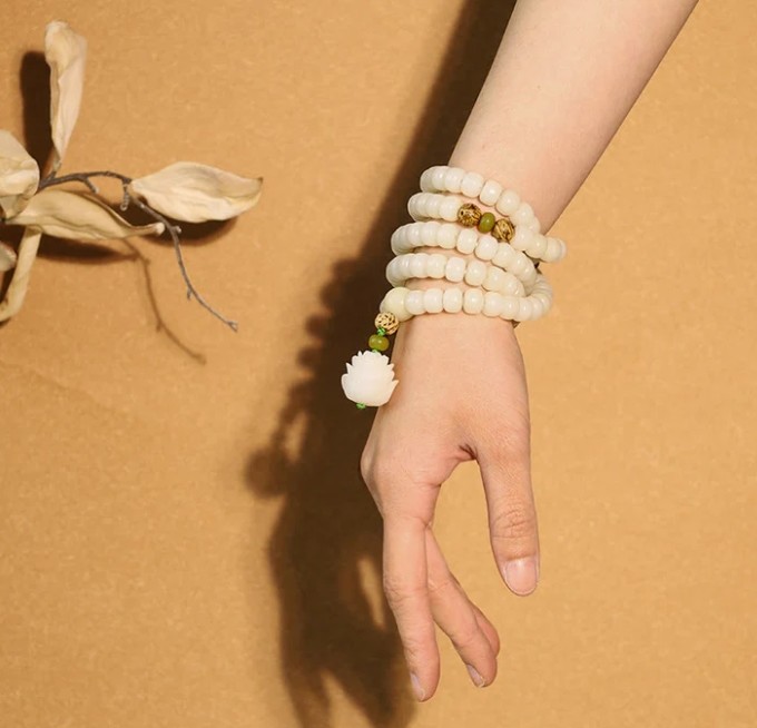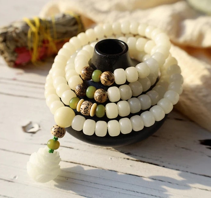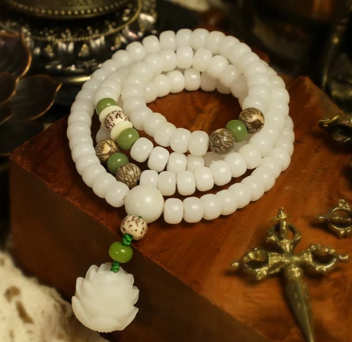 White Jade Bodhi Lotus Mala Harmony Necklace Bracelet is a unique and beautiful product that is handcrafted with care and precision. The product is made from high-quality materials, including bodhi seeds, and a lotus flower pendant.