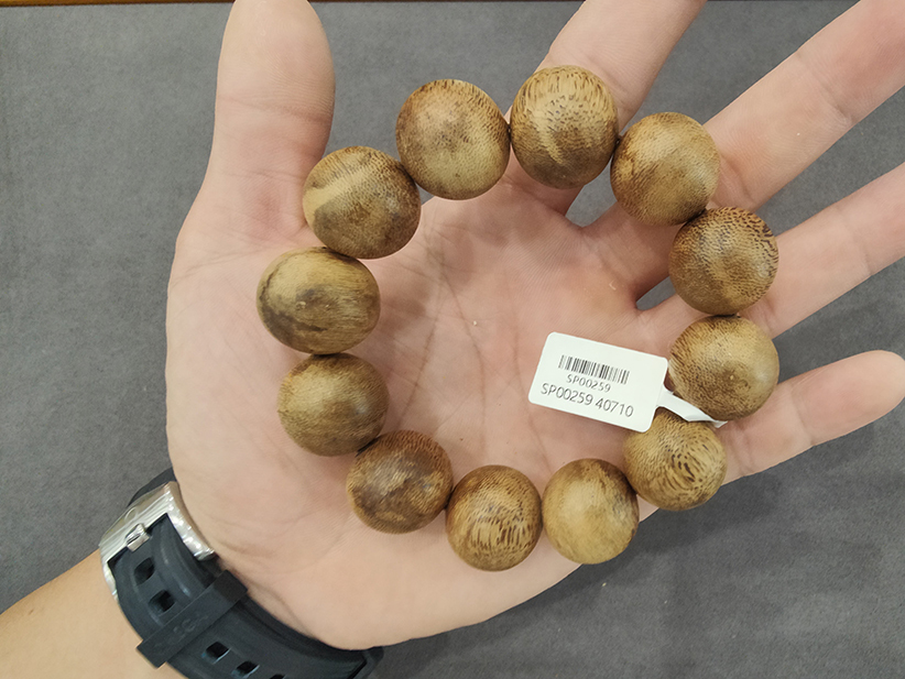 The Agarwood Bracelet model number SP00254 is a versatile accessory suitable for various occasions and scenarios. Crafted from Gaharu wood, this wood bead bracelet emanates a rich aroma that adds a touch of luxury to any ensemble. The smooth texture of the bracelet enhances the overall wearing experience, making it comfortable for daily use.